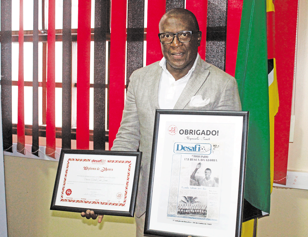 O semanário desportivo desafio agradeceu ao antigo capitão dos “Mambas” e, agora, seleccionador nacional, Chiquinho Conde, por ter sido uma das grandes fontes de notícias que publicou durante os 35 anos da sua existência, em cerimónia havida na passada sexta-feira, em Maputo, nas instalações centrais da Sociedade do Notícias, SA, prorietária do jornal e de outras duas publicações, nomeadamente o diário Notícias e o também semanário domingo.