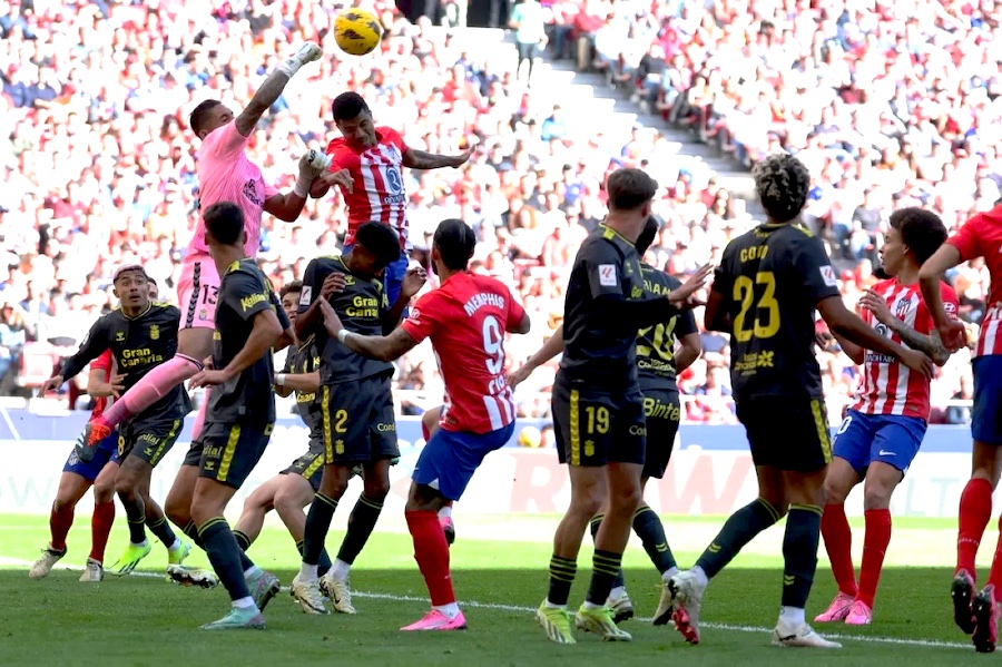 O Atlético de Madrid, com Reinildo Mandava a titular, chamou a si as honras com goleada caseira ao Las Palmas (5-0), no sábado, em jogo da 25.ª jornada da Liga Espanhola.