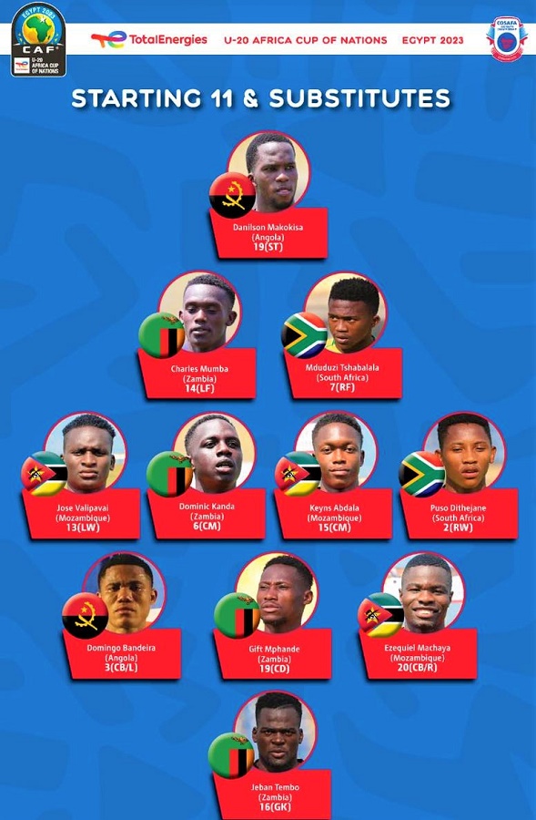 Três jogadores da Selecção Nacional Sub-20 foram nomeados pelo Grupo de Estudos Técnicos da Taça COSAFA para o 11 ideal da competição que decorreu no Reino de Eswatini.