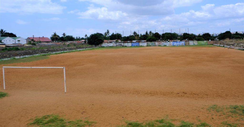 Campo do 1º de Maio outrora relvado, agora pelado e com sinais de degradação progressiva