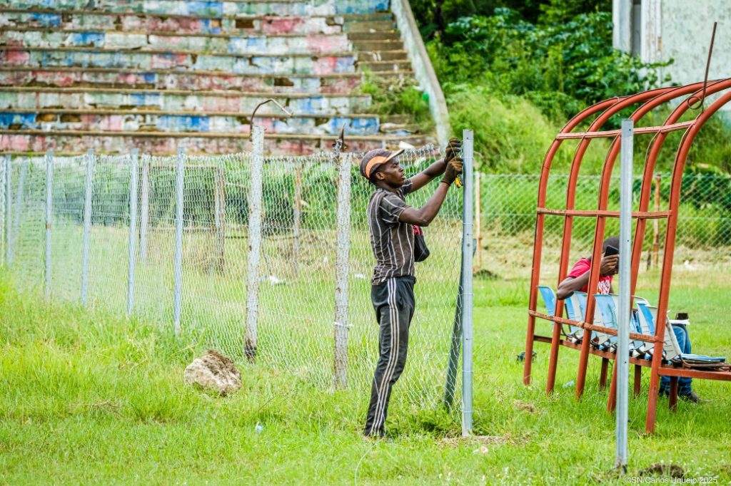 As obras naquele campo iniciaram nos finais do ano passado com a instalação de um novo sistema de rega do relvado, tendo se seguido o melhoramento de piso. Depois da colocação de vedação seguir-se-á a reparação dos bancos de suplentes.